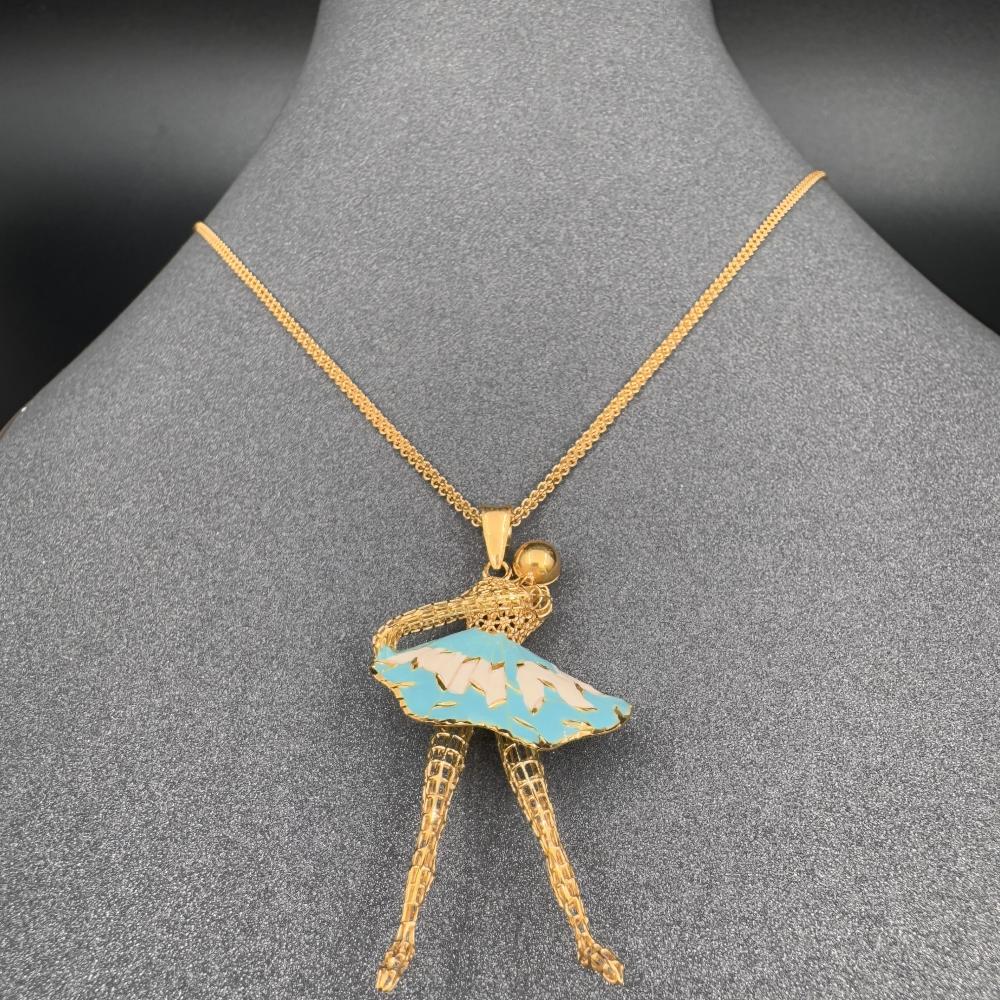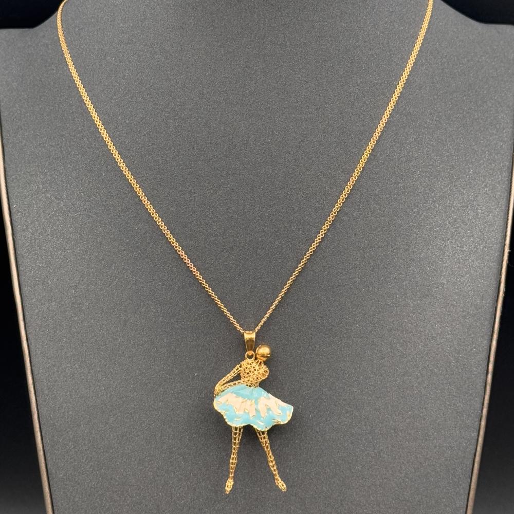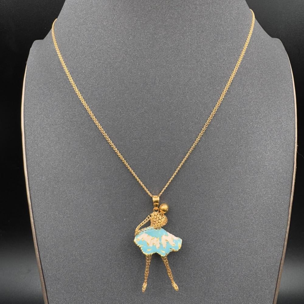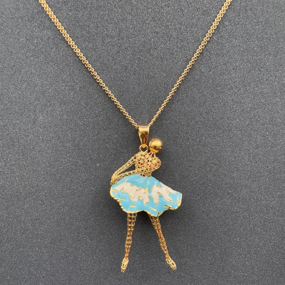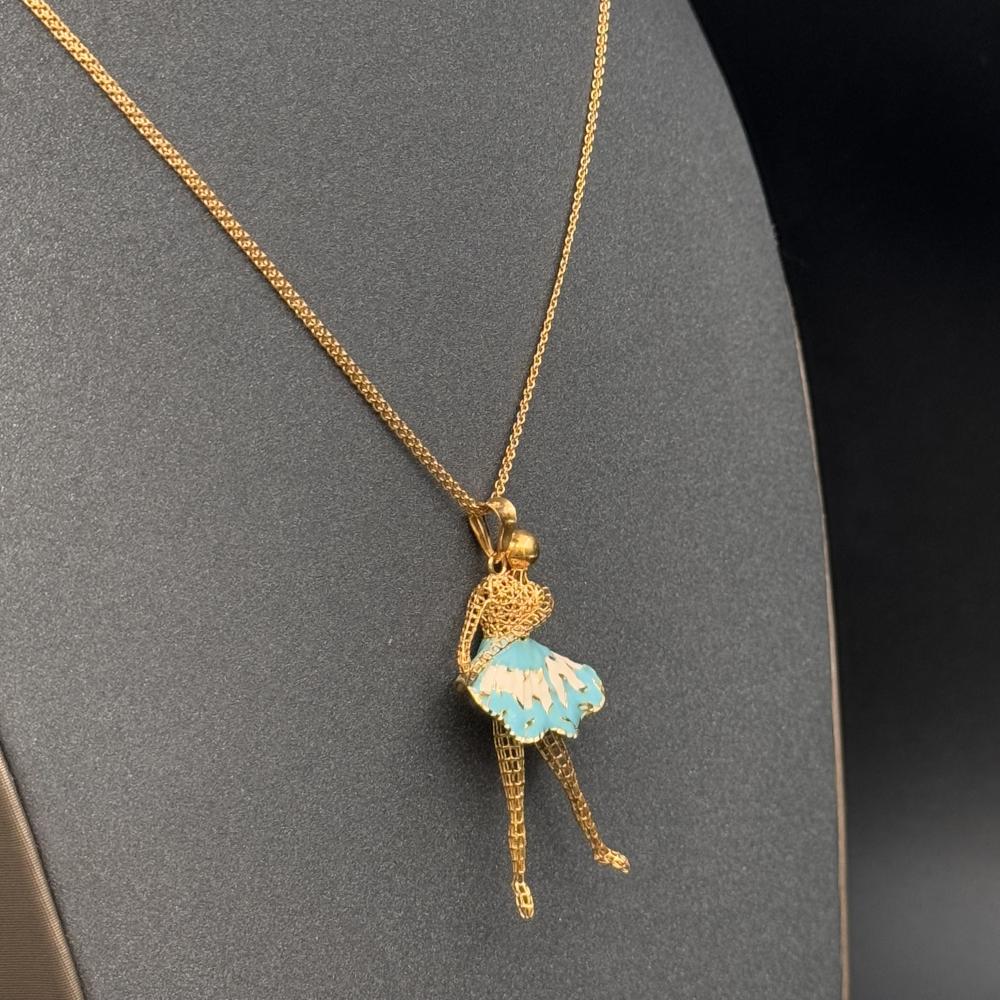- عقد ذهب بتصميم راقصه الباليه مع اللوان المينا الفيروزوي والابيض بتصميم ثري دي مع سلسال سميك من الذهب عيار 21 قراط